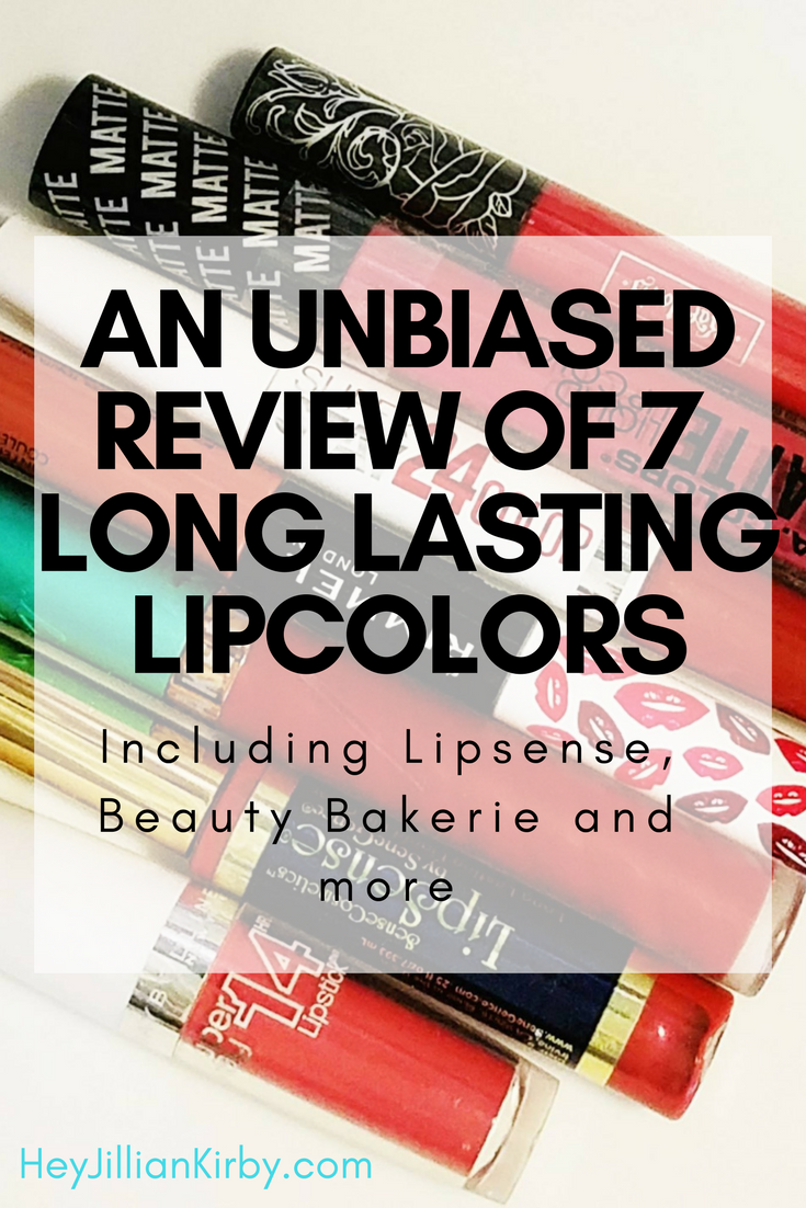 I love lipstick. I feel like it brings my face to life when I am feeling blah. What I don't love is reapplying, and wondering if my color is still even or smudged. Enter the long last lipcolor. Somehow in the middle of writing my first cookbook, I found time to I try out seven different long lasting lipcolors from six different brands, and offer my unbiased review below. There are no affiliate links and I was not compensated in anyway for this review; I wanted to offer a truly neutral stance on the battle of Lipsense vs Beauty Bakerie et al. I tried each color for at least a full day, and most of them I tried over several days in different conditions. Without further ado, here's the reviews!